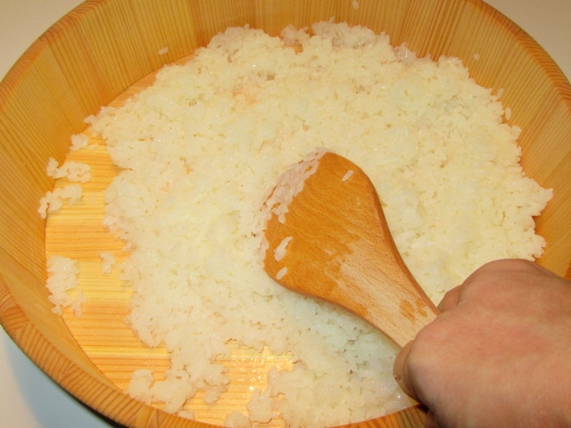 すし飯の合わせ方,しゃもじを立ててまぜる工程